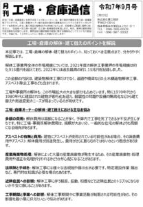 月刊 工場・倉庫通信(9月度)工場・倉庫の解体・建て替えのポイントを解説